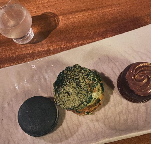 Photo of matcha macaron, salted chocolate truffle, and I forget what the middle one was, but it was awesome.