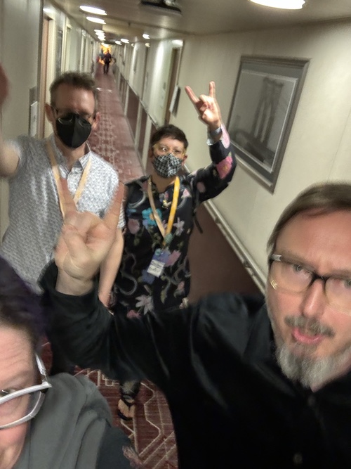 It was a thrill to meet John Hodgman, Vico Ortiz, Rachel Bloom, Vance Gilbert, Oscar Nunez, and OMG the f'n force of nature who is Nadine Smith (the firebrand who is fighting for LGBTQ+ rights in Florida.) I had fun with my new best friends MariNaomi and their husband Gary, my new best friends Ty and Jayne Franck, my new best friend Jasmine, my old best friend Krissy Scalzi, and person who would have been my new best friend, Tochi Onyebuchi but we just didn't get a chance to spend a lot of time together. Janet Varney will be my new best podcast friend once I appear on her show. Got tired of linking, so you can see everyone's bios here.