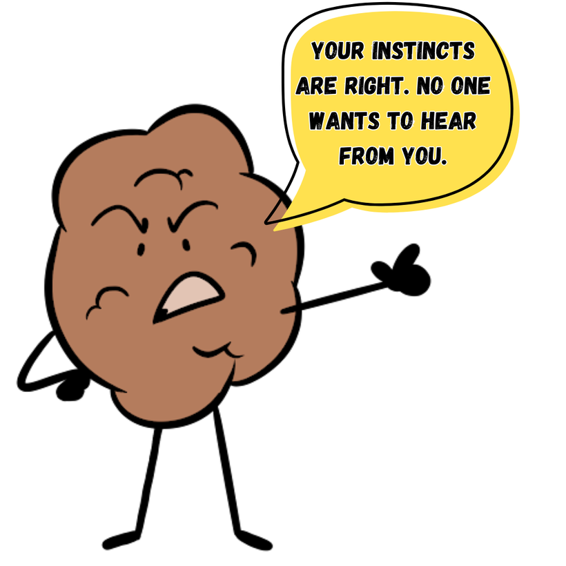 ALT- illustration of Bart, the bully in my head, who looks like a potato, saying "your instincts are right, no one wants to her from you." Art by numbersninja