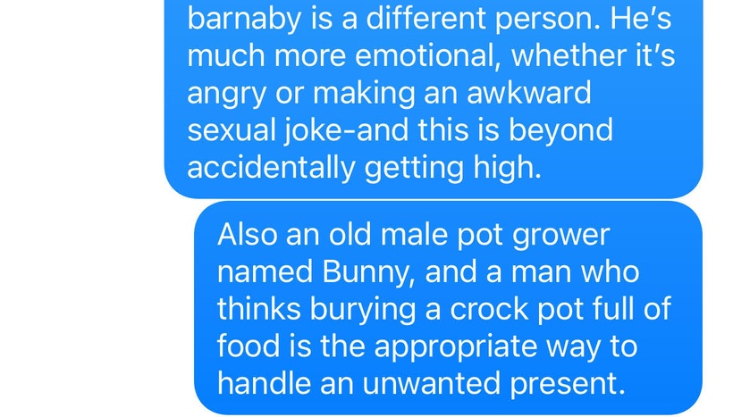 Every once in a while I will text my friend Jen (of Udden fame, agent extraordinaire) several random thoughts about this bizarre show. We talked about doing a podcast together, but the thought of another show to produce makes me want to cry.
